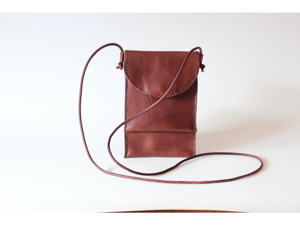 Ručně šitá kožená kapsa na mobil z kvalitní hovězí kůže v hnědé barvě. Praktický doplněk pro každého, kdo chce mít telefon, peníze nebo drobnosti vždy po ruce.